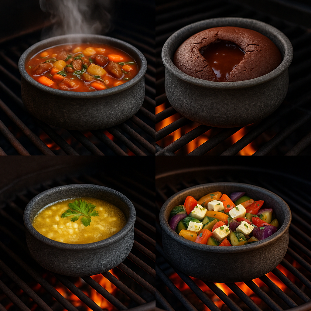 Auf dem Grill: In der indirekten Zone oder neben der Glut platzieren, langsam aufheizen, Zutaten einfüllen, Deckel schließen – fertig.