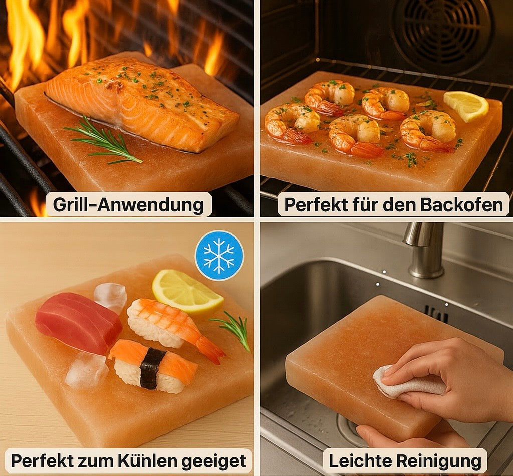 • Salzstein (20×10×2,5 cm) – natürliche Mineralien für feine Würze ohne Zugabe von Salz